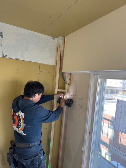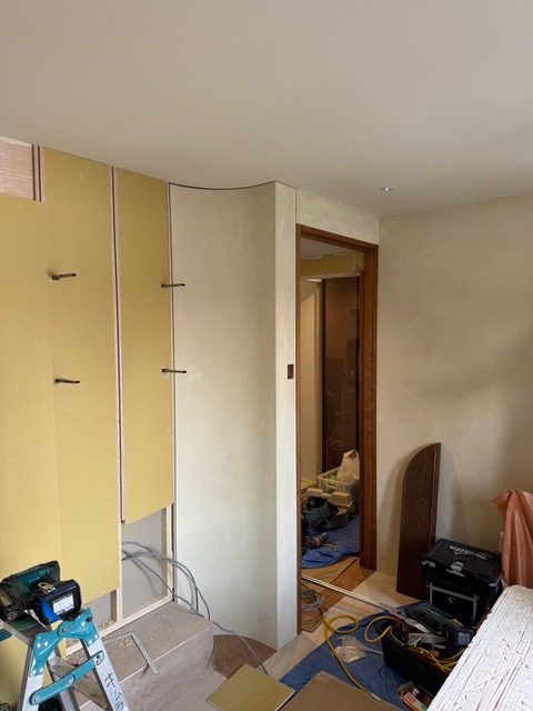 木軸及び軽鉄下地にて壁・天井の造作や家具や金物などを絡ませた複雑な作りや様々な高さに対応して床上げ造作出来ます。